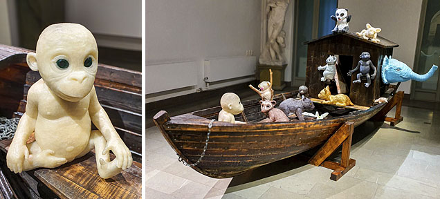 Hannas ark är titeln på Hanna Belings utställning där utrotningshotade djur fått stå som förlagor till de femtontal skulpturala verk hon visar i Konstakademiens Tengbomhall. Alla skulpturer utom en är gjutna i silikon, ett för ändamålet passande material utan konsthistorisk belastning.