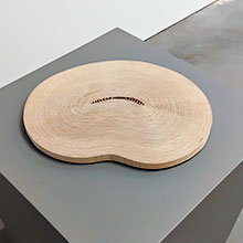 Planheten (som hos en tallrik) är också starkt närvarande i konstnärens eleganta, monokromt målade, små skulpturer i plywood på golvet. Likt gamla tiders origami, skjuter de små skulpturerna ut sina plana ytor kors och tvärs, upp och ner – resultatet är alster som i upprätt form kan stå på egna ben, lika självklart som ett möblemang i en lägenhet.