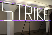 Kafkatemat kan dock inte anses självklart om man ser till den totala presentationen, och man undrar om inte vissa verk fått följa med av bara farten. Den något tilltvingade kopplingen mellan Kafka och Claire Fontaine-kollektivets (i och för sig intressanta) neonverk "Strike" är ett talande exempel. Det flourescerande ljuset i verket framkallar enligt den beledsagande texten "... känslan av labyrintiska rum i den institutionella maktens korridorer som Kafkas verk kretsar kring". En ganska långsökt förklaring för att infoga verket i temat.