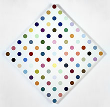 Gagosian ställer ut Damien Hirsts Spot Paintings i samtliga sina gallerier runtom i världen. Det rör sig om just vad det låter som, målade färgprickar applicerade på duk av Hirst med assistenter under tjugofem års tid.