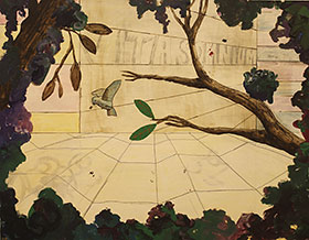 ”Växtlighet omringar en fågel” är titeln på en närmast insmickrande målning, där en ensam fågel på en gren avtecknar sig mot en skarp rödviolett himmel. Samma knotiga gren återfinns också i målningen ”Fågelkvitter”. Men där har fågeln lämnat sin gren och försöker fånga en insekt i luften. Bakgrunden är en byggnad med en sluten fasad. Svaga blyertsstreck på muren formar orden VITA SOMNIUM. Runt hörnet kan man ana fortsättningen BREVE i det latinska tänkespråket – livet är en kort dröm.