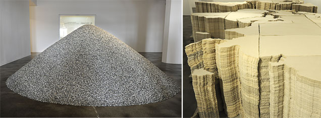 Eller i ”World Map” där tusentals lager av tunn utstansad bomullsväv skapat ett slags sedimenterad världskarta. Verket avser (enligt presentationstexten) att kommentera Kinas världsledande roll som producent av billiga textilier med hjälp av lågavlönad arbetskraft, men ger i sin gestaltande form knappast de associationerna. Snarare leds tankarna till globalisering och dramatiskt växande befolkningstäthet genom textilverkets uppsvällda och oöverblickbara kartstruktur.