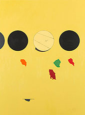 Miniräknaren åker fram för att kontrollräkna mått och relationer. Förhållandet mellan höjd och bredd i målningarna håller faktorn 1.3571, men teckningarna avviker: 1,3508. Fint, det är inte precisionen hos Duchamp som Svenungsson är ute efter. Blir dock lite tveksam, snabbgoogling på 3571 visar beskrivningar av piller mot högt blodtryck, men, nej, detta kan inte ha med piller och födelsemärken, förändringar som hos Luc Tuymans, eller?