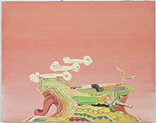 Är det en invitation till de bindgalnas skara, till dem vars psykoaktiva receptorer ständigt arbetar på övertid? Eller kanske de visuella spåren av en fördröjd insikt – den om hur de målade tingen torde te sig i vårt krökta universum när strängteorins samtliga dimensioner fått fullt genomslag?