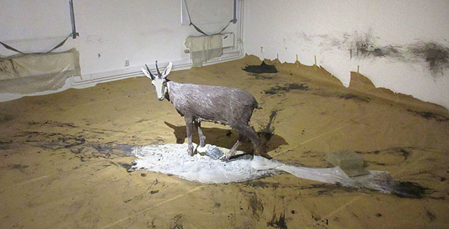 När man kommer in på Galleri Se konst i Falun möter man getens blick. Den står mitt på golvet i galleriets stora rum, eller snarare, den står som om den stannat i ögonblicket när besökaren kommer. Golvet och en bit av väggarna täcks av brunt papper med svarta fläckar. Spotlights belyser scenen med kallt ljus. Galleriet har blivit ogästvänligt. Utställningen heter "My Room" och är gjord av Roland Persson.