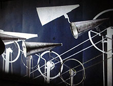 Ur megafoner i rummets fyra hörn hörs kompositören Philip Millers ljudlandskap med starka inslag av tuba och trumpet. Mitt i det stora rummet rör sig en konstruktion i trä, som en kraftkälla, ett dunkande hjärta.