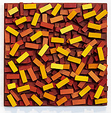 Magnus Alexanderssons linjespel väcker lusten att läsa, att tränga in, igenom, att nå väsentligheterna. Men man får anstränga sig. I de två målningarna med serietiteln Weave stängs blicken både ute och sugs in i flätverket av lodräta, lätt lutande, välspända band, genskjutna av ilskna riktningsupplösande diagonaler. Målningen växer ut i rummet och blir märkligt holistisk, även djupverkande. Det är inte bara formerna som bidrar till detta utan även det intrikata spelet med valörer och kulörer som medspelare och kontrasterande motspelare. Ögats egen inre kemi bidrar till hypnosen.