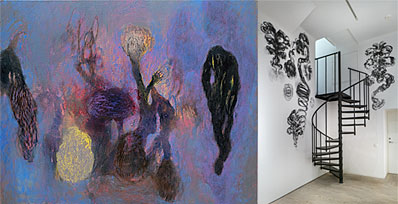 Det är intressant att ta del av bakgrunden till Martin Ålunds aktuella utställningar på Konstakademien och Galleri Flach. Som en av Konstakademiens vistelsestipendiater i Paris år 2018 genomgick han en konstnärlig metamorfos i ateljén. Han drabbades av ett alter ego som tog kropp i honom och lät penslarna och kolet dansa på en lång utandning. De kollegiala samtalen utvecklades lika självklara som Swedenborgs parallella i andevärlden.