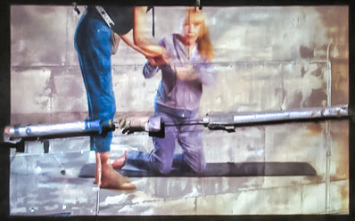 Mekaniska rörelser trots smärta är den svenska titeln på Gabriela Pichlers och Johan Lundborgs stora installation längst ner i verket, under masugnsplanet. Gabriela Pichlers mamma arbetade på en fabrik och fick med tiden ryggskador. Dottern lekte i fabriksmiljön. I korta, snabba filmsekvenser på den grova väggen ser vi hur mamman får ont och får hjälp av en kamrat. Med ett praxinoskop (uppfinning från 1877 för att skapa rörliga bilder med hjälp av projektor, förstoringsglas och speglar), kan vi följa en del av hennes rehabilitering. I installationen finns som en motsats andra rörliga bilder med barnets lek och hästens galopp. Att kliva in i detta verk av såväl rymd som fasthet skapar en känsla av att vara i ett kreativt centrum för att begrunda rörelsen och en del av dess följder, inte bara i en fabriksmiljö.
