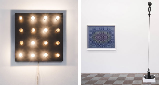 Som en historisk pendang till galleriets skulpturer presenteras flera av Biasis Op-art verk från hela karriären. Här framträder rörelse genom optiska ljusfenomen efter vetenskaplig precision. I Castellanis Superficie Bianca (2005) syns en vit canvas, uppspänd på nålar som skapar tredimensionellt djup mellan skugga och färg. Trots sin ringa ålder, agerar den gott som kritiskt lärdomsexempel i förhållande till formalismen, vars skugga hängde över efterkrigstidens konst.