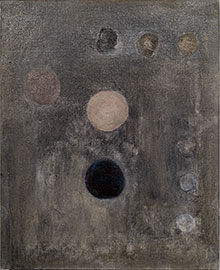 Men utställningens centralverk måste ändå sägas vara Collar, som även det visar hur det koncentrerade formatet kan bära betydligt mer än sin mätbara yta. Där har Sylvia Naimark fångat en dramatisk och naturlyrisk ton som i sina delar pekar tillbaka mot ett ljusdunkelmåleri med tidiga, romantiska anor. Varma toner omsluter varandra och ett pärlliknande spel av variationsrika ringar bildar yta åt den starkt organiska urformen.