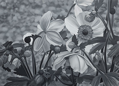 Carl Hammoud är generellt intressantare, och mer originell, som målare än som tecknare. Koloriten känns härligt åldrad och lite gulnad. Några målningar på utställningen visar att han paradoxalt nog ger döda ting, som möbler och böcker, mer liv än natur och växter. Det är som att han inte vill, eller kan, gestalta det organiska i bladen, blommorna och trädstammarna.