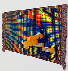 Men frågan är om inte det bestående intrycket av Kodade trådar är något mycket mer prosaiskt. Utställningens curator Emil Nilsson har valt att iscensätta en mindre utställning i utställningen med 60- och 70-talesmodernister (ur museets samling) som Ulla Wiggen och Elsa Pärs Berglund. Att dessa glider in så smidigt i helheten säger en hel del om vad utställningen Kodade trådar framför allt landar i: en politiskt färgad modernism med starkt abstrakt/estetiska undertoner.