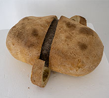 Humor, kontemplation och sorg präglar annars den spatiösa presentationen. Till den förstnämnda kategorin kan bland andra nämnas Andrej Zverevs brödinbakade sten. Även dörren, med texten Studio 44, som penetrerats av stor sten ansluter väl till den svarthumoristiska genren.