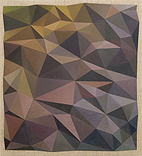 Det är dessa två nästan bortglömda föregångare som dyker upp ur minnet när jag möter Jesper Nyréns facettkubistiska experiment. Och ändå skulle Nyréns målningar knappast kunna vara gjorda för hundra år sedan, innan 3D-programmen väckte vårt osentimentala saklighetssinne – förmodligen är de endast sprungna ur snarlika eller parallella källor. Dessutom är sökandet efter bildens andliga eller transcendentala värden förhållandevis nedtonat hos Nyrén, åtminstone i de mindre målningarna. Han söker där byggstenar och modulsystem som kan beskriva en nykreerad värld, en konkret ort utan verklighetsanspråk. Det är ingen spegelvärld vi möter, ingen visuell reflex. Ändå tycks facetterna forma sig till bergsformationer, ansikten, planeter. Lyckligtvis försvinner skenbilderna lika snabbt som de uppstått.