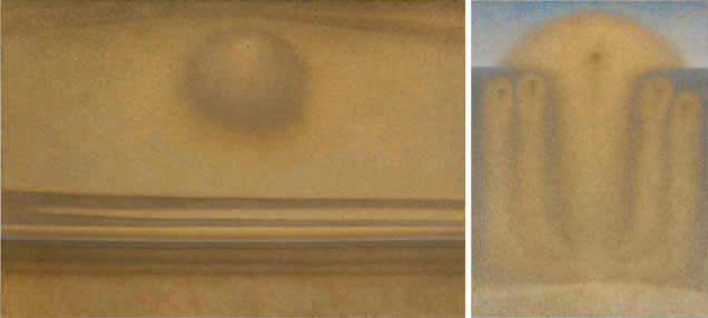 I samtliga upplevs ett intensivt ljus. I varje målning finns en ljuspunkt som för tankarna till en himlakropp. I vissa fall är himlakroppen en mörkare punkt, och inom den finns en mörk kärna som drar till sig blicken.