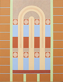 Det är ett rationaliserande måleri där den oerhörda noggrannheten skapar ett litet surrande obehag, beräkningarna och den geometriska balansen framträder som rent bärande i denna måleriska samhällsplanering. Samtidigt är det lockande att vandra runt i en klinisk exakthet, fönsterpartierna med sina raka linjer, de rena ytorna som harmoniserar och ingenting som stör balansen.
