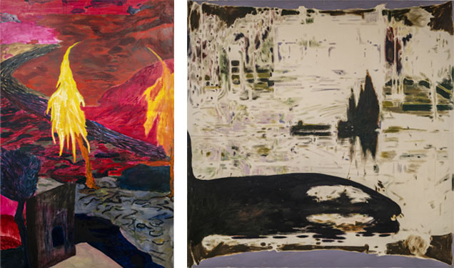 Om den brittiske målaren Peter Doig har haft något inflytande på Olle Witts konstnärskap känner jag inte till, men associationerna leder delvis åt det hållet. Witt har ett snarlikt formstarkt uttryck med en orädd penselföring som betydligt mer erfarna konstnärer skulle vara stolta över. I den stora kvadratiska målningen Rederiet Förräderiet lägger han dessutom till en atmosfärisk rumslighet samt en medvetet bearbetad suddighet runt vissa av de inmålade objekten. Och trots de klart naturinspirerade motivet framstår målningen i det närmaste som ett abstrakt statement. Balansgången mellan beskrivande och teckenbaserat måleri får i flera av hans verk här sin sammangjutna form.