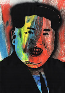 Intill två porträtt av Nordkoreas ledare Kim Jong-un med slipade, vassa tänder hänger ett porträtt av en hund med stora sorgsna ögon. Det hoppar och växlar genom målningarna, hojtar och viskar om vartannat. Det hela hade kunnat bli visuellt övermäktigt men utställningen är återhållsamt hängd och verken får plats att andas. Svartvita och blyertsgrå bilder varvas med de mer färgintensiva och skapar ytterligare pauser.