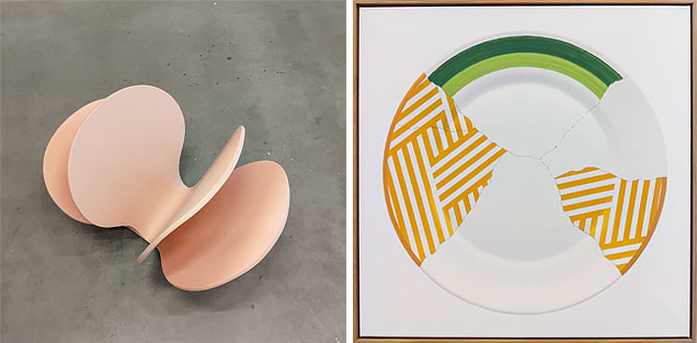 Men något har hänt med tallrikarna mellan kraschen och den varsamma restaurationen. Istället för att skärvorna funnit sina likar har de hoppat runt i något slag av kalejdoskopiskt busstreck där inget mer än den ursprungliga tallriksformen är i behåll i slutresultatet. Till detta kommer själva mödosamheten i tillblivelsen. Istället för att hänga upp hoplimmade skärvor av en gång verkligt närvarande porslinstallrikar är allt målat i olja på duk – fast realistiskt så det förslår.