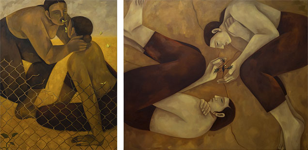 De Tierra y Susurros är en ny samling verk av den uppåtgående stjärnan Hilda Palafox. Hon är verksam i Mexico City och är tryggt rotad i mexikansk konsthistoria, inte minst muralmåleriets arv med Diego Rivera som centralgestalt. I detta finns ett pedagogiskt uppdrag, med tillgänglighet för folket som prioritet. Palafox har också utfört en rad arbeten i det offentliga rummet.