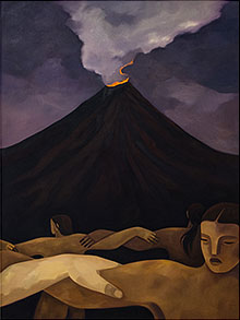 Vulkanutbrottet i Ritual a las faldas de un volcán är å ena sidan en förödande kraft, å andra sidan något som ger bördig mark och förutsättningar för nytt liv. I Resiliencia I sitter en person med en trasig och skev spegel som visar ett brinnande landområde. Även här kommer nytt liv ur askan. Resiliencia II är målad på två dukar, där en möjligen döende kvinnogestalt ger liv åt ny växtlighet, omgiven av mänskliga händer. Vulkanen återkommer också som material i form för de reliefer som utförts i en vulkanisk bergart, ofta använd som byggmaterial i mexikansk arkitektur.